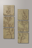 Ceramic artist, Heather Delisle, draws inspiration from nature as she replicates textures and patterns of the natural world in her handmade ceramic tiles and decorative sculptures. Delisle carefully selects and prunes cedar branches which are pressed into handmade tiles. The tiles are once fired and cold-finished with acrylics which enhance the beauty of the imprint. Delisle also incorporates her interest in arranging modules to produce sculptures reflecting nature’s repeated patterns. Wall-hung and balanced ceramic spheres are wheel-thrown and kiln fired before receiving the final surface treatment. They are finished in a sawdust firing which gives each sphere a unique carbon imprint from the organic material burned on its surface. Currently some spheres are also receiving a cold-finish with acrylics which adds a splash of color to her installations.